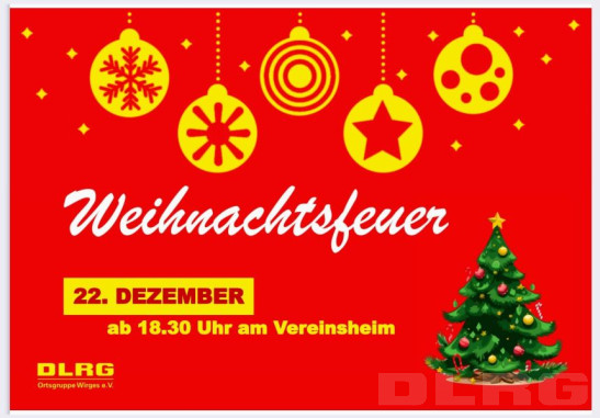 Da am 22.12.2025 das Hallenbad schon geschlossen hat und somit kein Training stattfinden kann, läd die DLRG Wirges herzlich zu einer kleinen Weihnachtsfeier am Vereinsheim unterm Hallenbad ein. ... Mehr erfahren